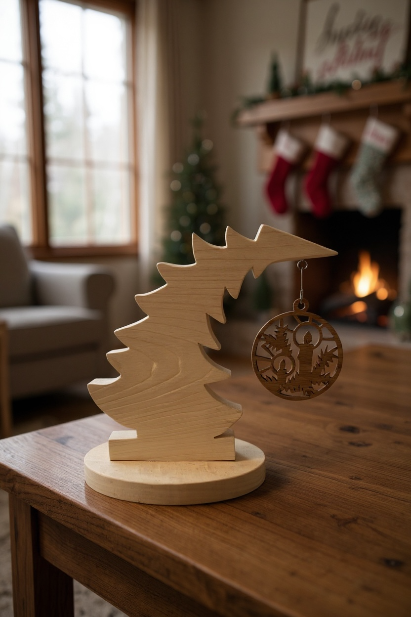Design et original, ce petit sapin en bois s’inspire des paysages d’hiver scandinaves. Son disque suspendu, finement ajouré, ajoute une note élégante et raffinée. Parfait sur une table, un comptoir ou une vitrine.