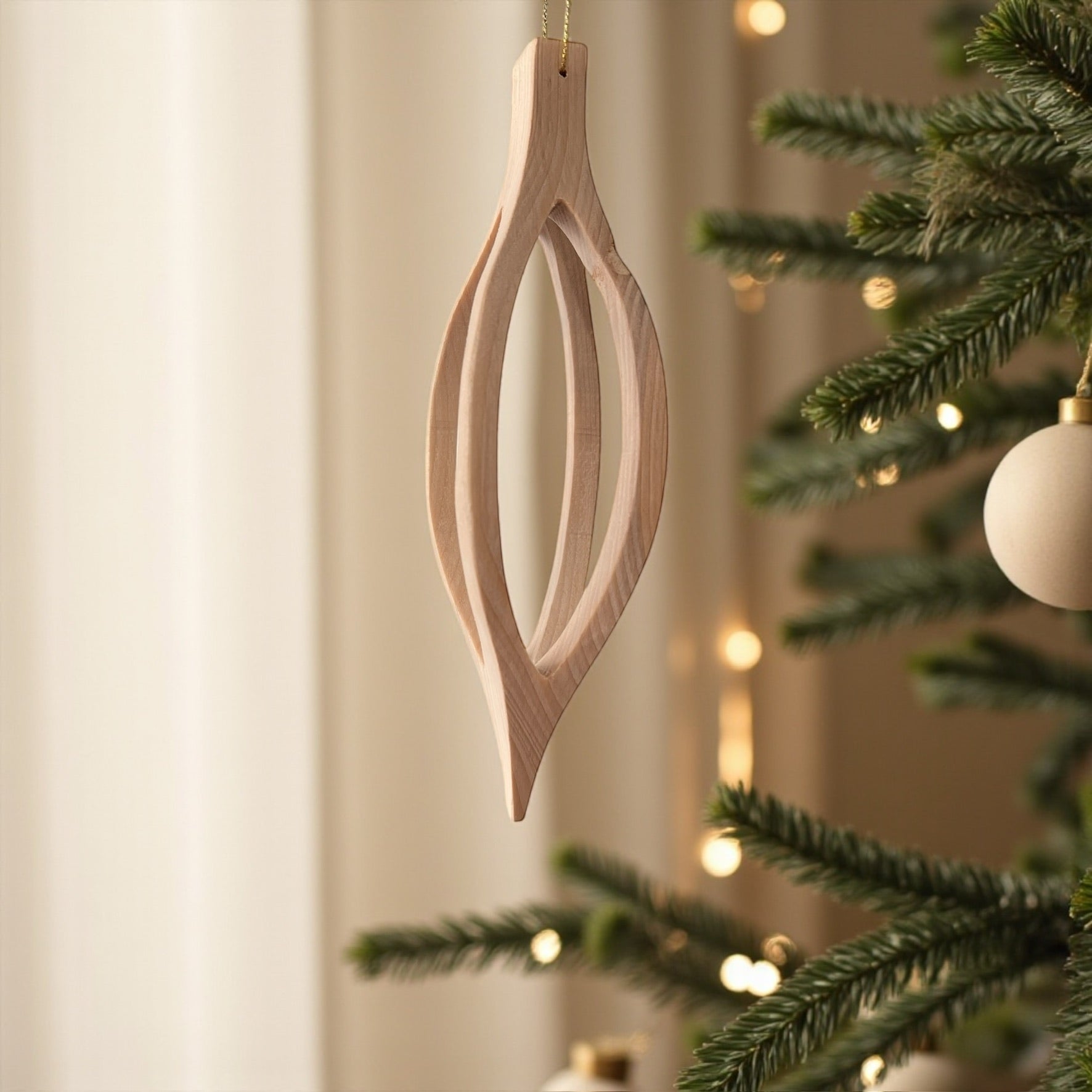 Cette suspension en bois massif, fabriquée artisanalement, apporte une touche d’élégance naturelle à votre sapin. Les formes intemporelles, inspirées des ornements anciens, subliment les décorations de Noël dans un esprit authentique et écoresponsable.